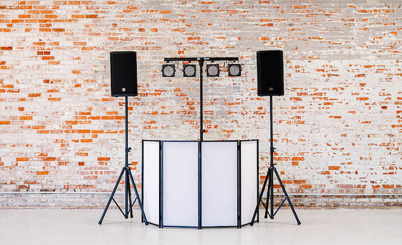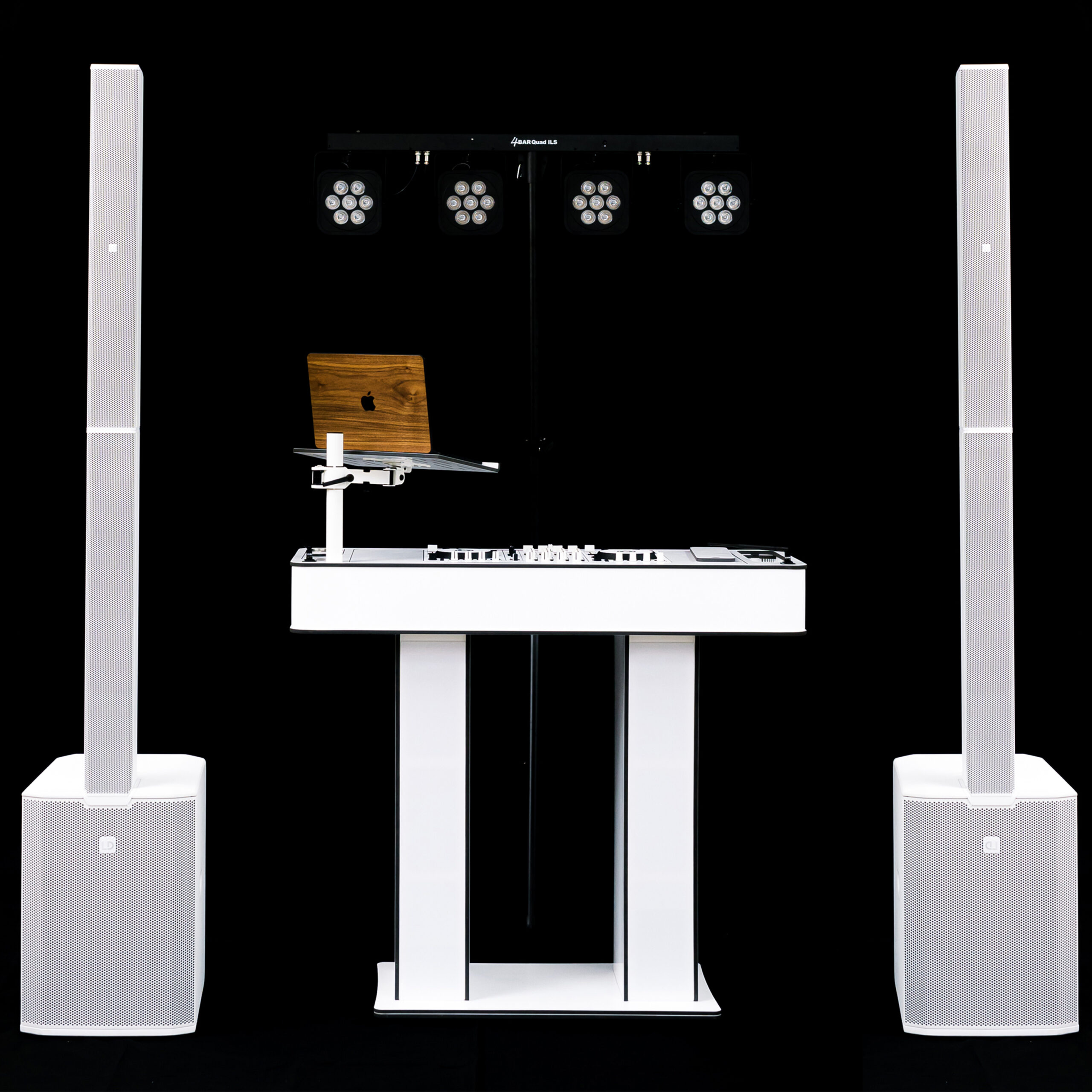 A clean, professional setup that looks great in any venue. Our standard DJ booth blends seamlessly into your event while keeping the focus on the music and the party.