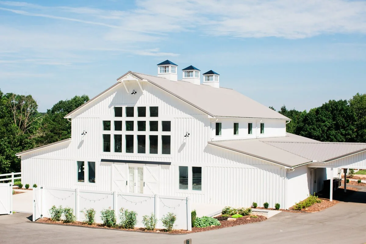 The Barn at Blue Sky Farm in Dallas, North Carolina is a modern white barn wedding and event venue located just outside of Charlotte. Set on a scenic countryside property, the venue offers a balance of rustic charm and refined design, making it a popular choice for couples looking for a polished barn wedding experience. Its location provides easy access for guests traveling from Charlotte, Hickory, and surrounding areas while still delivering a peaceful, private setting away from the city.