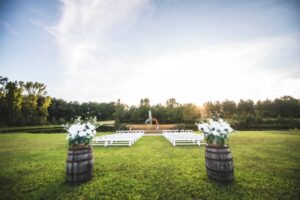 One of the most defining features of The Barn at Vino is its expansive natural landscape. The property includes rolling green meadows, a vineyard, and multiple ponds that create a calm and picturesque environment.  These natural elements provide a variety of backdrops for ceremonies and photography, allowing couples to fully take advantage of the outdoor setting. The quiet countryside location also adds a sense of privacy, making it ideal for couples who want a more secluded and relaxed wedding experience.