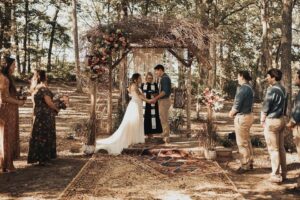 As a wedding venue, The FarmHouse Siloam is designed to provide a full, all-in-one wedding experience across multiple spaces on the property. The venue includes a restored 1894 farmhouse, a stable-style barn, wooded ceremony areas, and a covered reception pavilion often referred to as the “Treehouse.” This variety of spaces allows couples to host their ceremony, cocktail hour, and reception all in one location while maintaining a natural and organized flow throughout the event.