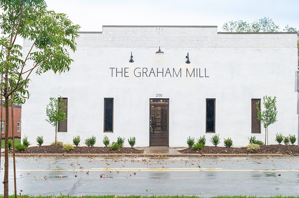 The Graham Mill in Graham, North Carolina is a modern industrial wedding and event venue that blends historic architecture with updated design. Located in downtown Graham, the venue sits inside a renovated mill building originally constructed in 1934. The space has been carefully restored to maintain its original character while introducing clean, contemporary finishes that appeal to today’s couples and event planners.