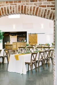 One of the most defining features of The Ivory Barn is its clean, modern aesthetic combined with rustic elements. The venue centers around a 5,000-square-foot climate-controlled barn designed with tall ceilings, large windows, and a bright white interior that allows natural light to fill the space. This creates a light and airy atmosphere that works well for a wide range of wedding styles, from elegant and upscale to more relaxed, rustic celebrations. The open layout also provides flexibility for dining, dancing, and entertainment.