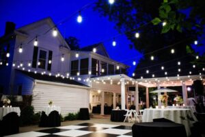 Inside, the Grand Ballroom serves as the primary reception space. It offers an elegant environment for dining and dancing, with enough room to accommodate up to around 160 guests. The interior spaces maintain the charm of the historic home while incorporating modern updates that support events comfortably. This balance of old and new is a key reason the venue remains popular for weddings in the area.