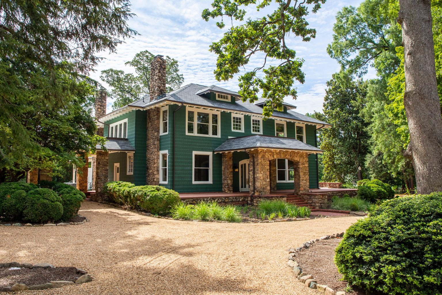 The VanLandingham Estate in Charlotte, North Carolina is a historic estate wedding and event venue located in the Plaza Midwood neighborhood just minutes from Uptown Charlotte. Originally built between 1913 and 1914, the estate is a preserved example of early 20th-century American Craftsman-style architecture and is listed on the National Register of Historic Places. The property sits on several acres of landscaped grounds, offering a secluded and elegant setting while still being centrally located within one of Charlotte’s most vibrant areas.