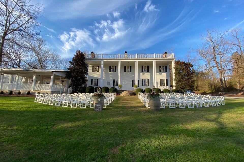 Vesuvius Vineyards in Iron Station, North Carolina is a historic estate wedding and event venue set on more than 700 acres of private countryside just outside the Charlotte area.  Located roughly 30 minutes from Charlotte, the property offers a secluded, destination-style atmosphere while still being accessible for guests traveling from across the region. The venue is centered around a historic home and expansive grounds, creating a setting that blends Southern estate charm with natural beauty. The size of the property allows for a high level of privacy, making it a strong option for couples looking for a quiet and immersive wedding experience.
