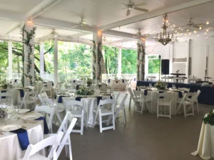 As a wedding venue, Vesuvius Vineyards is known for its flexibility and variety of ceremony and reception spaces. The property includes landscaped lawns, wooded areas, and designated ceremony sites that allow couples to tailor their wedding to their specific vision. Outdoor ceremonies are often held on the lawn surrounded by tall trees and greenery, creating a natural and romantic backdrop.  The venue also features covered areas and patios that can be used for cocktail hour or receptions, giving couples the ability to incorporate both indoor and outdoor elements into their event.